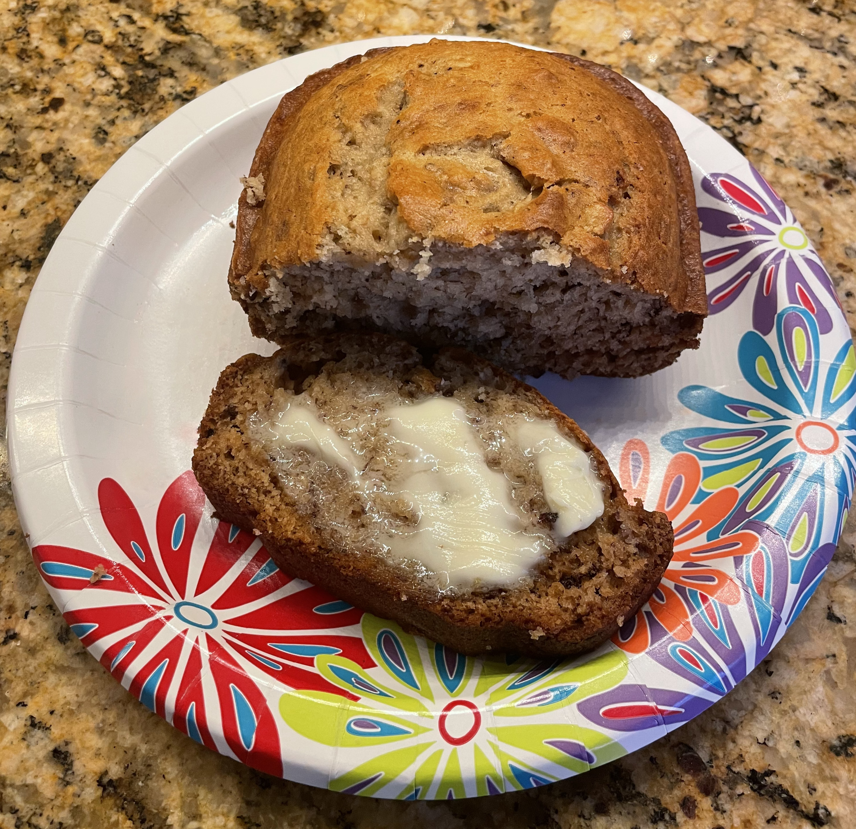 Pour into loaf pan, bake 50-60minutes. For cupcake size bake about 35minutes. Let cool about 10minutes.
